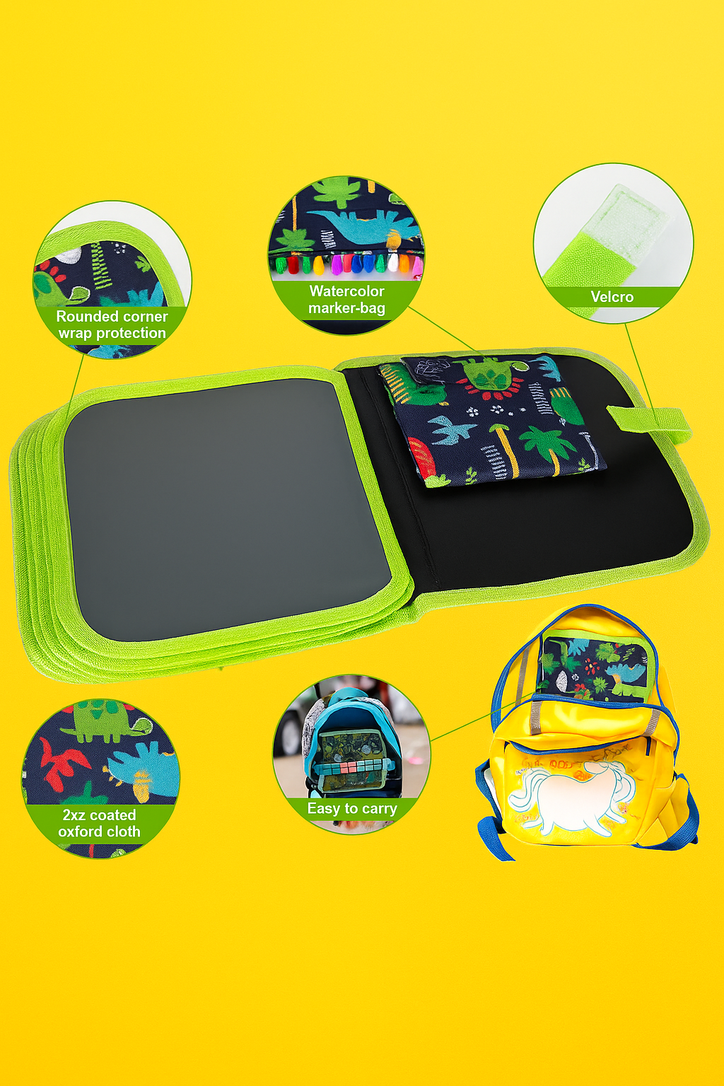 Bright colour pens my son really liked it soo much... Anything we can write or create it and then wipe it without any marks....